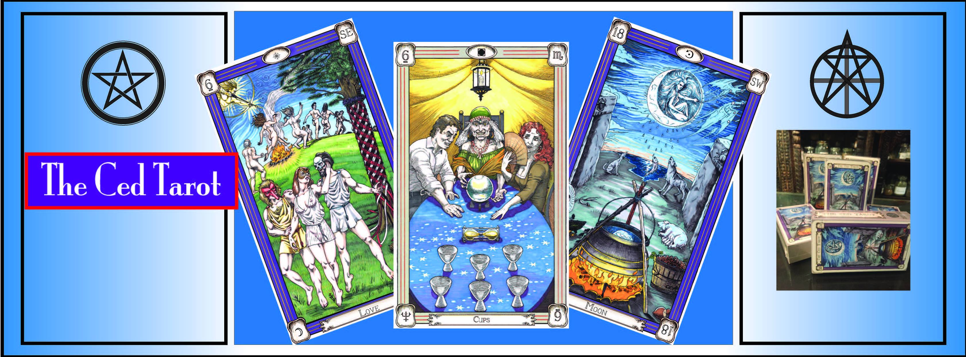 The Ced Tarot is a new and exciting Tarot Deck based upon a Traditional Witchcraft Compass Cosmology and contains a great deal of Trad Craft Initiate imagery drawn from witchcraft practices and lore, in reflection to & of Traditional Tarot Mysteries and History. This Desk is easy to access for folks from many paths of interest, representing a real meeting of streams, one from Traditional Witchcraft and one from Classical pre Waite Tarot.